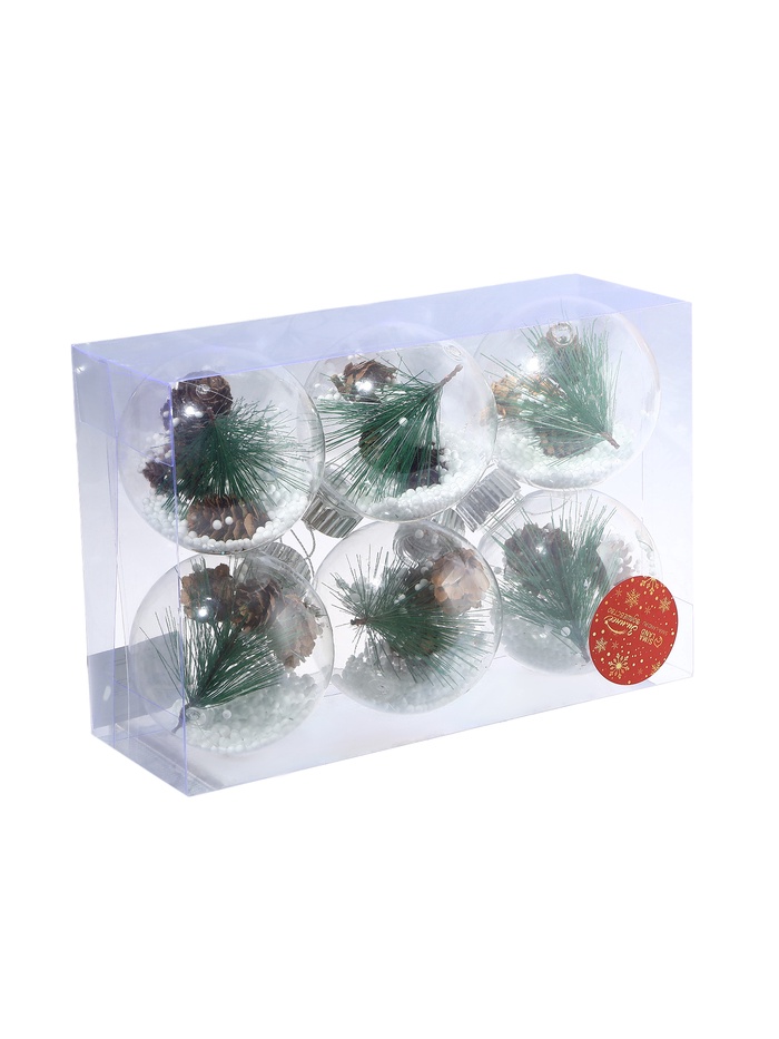 - 6 прозрачных шаров с наполнением в виде «шишек».