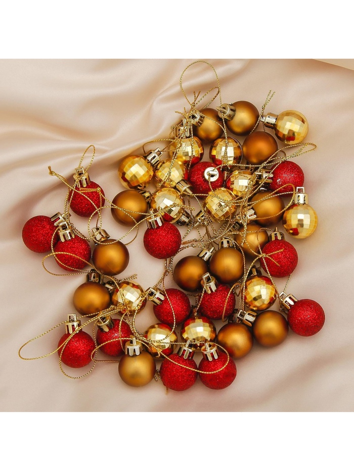 Новогодние шары «Малышки в шарике» — это яркий и насыщенный набор для украшения ёлки к празднику. В комплект входит 40 пластиковых игрушек диаметром 2,5 см в красно-золотистой гамме с однотонной поверхностью. Украшения выполнены в стиле новогоднего барокко, что делает их идеальным решением для создания праздничной атмосферы без лишней пестроты.