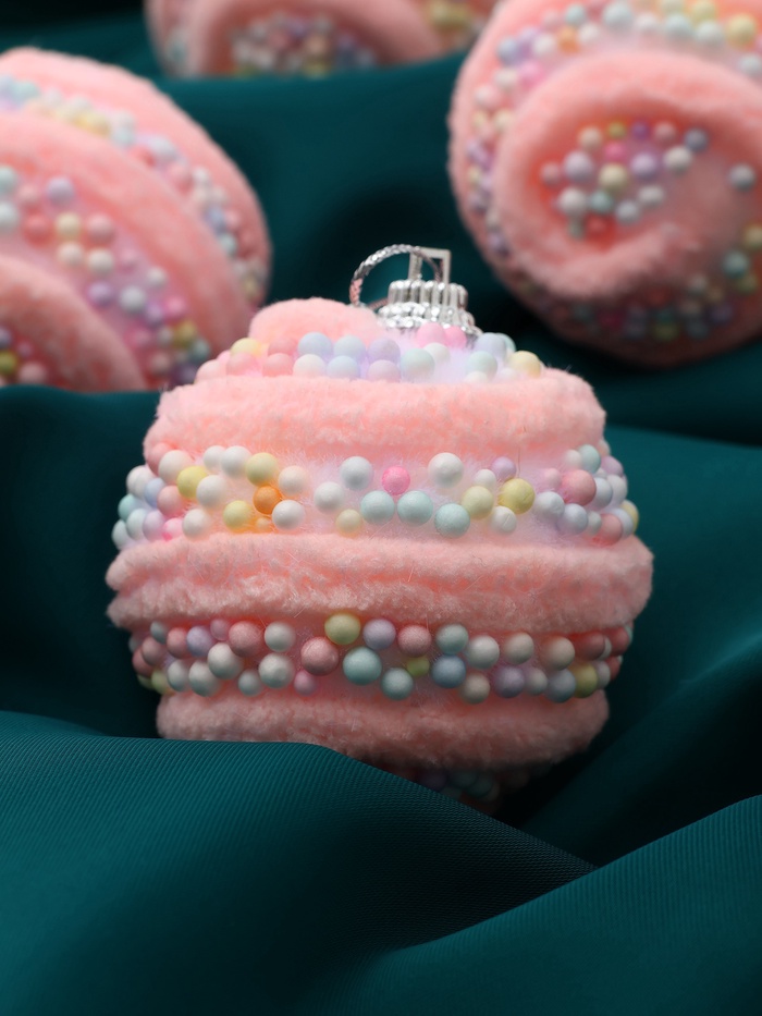 - Розовый оттенок привносит мягкость и яркость в оформление ёлки.