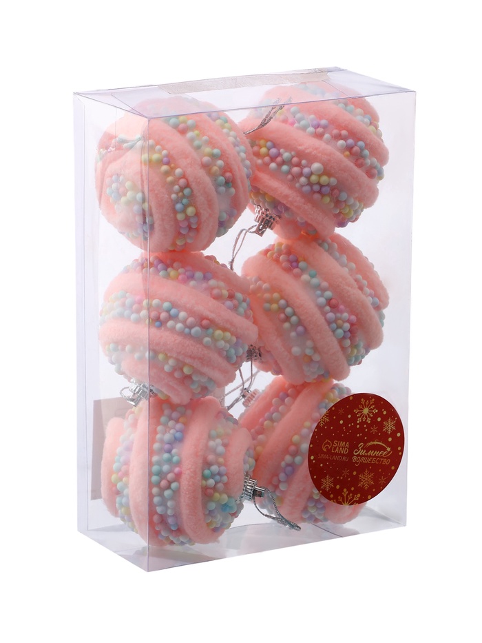 Набор из шести розовых ёлочных шаров диаметром 6 см добавит нежности и свежести в праздничное оформление. Пластиковые шары с тонким рисунком создают лёгкий акцент, подчёркивая праздничное настроение и стиль новогоднего декора.