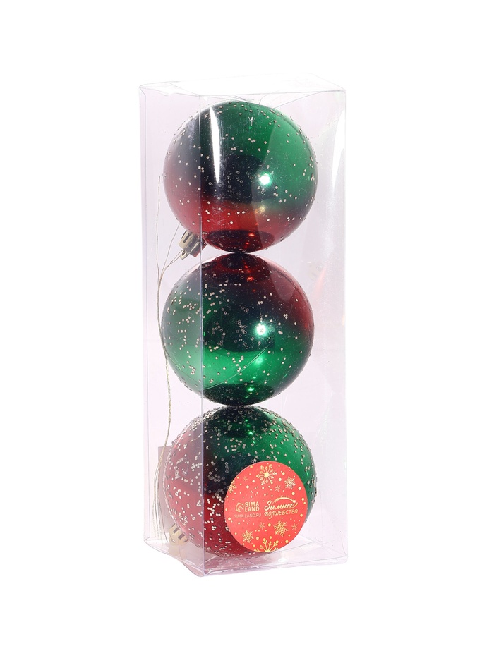 Эти шары создают образ праздника, где встречаются классика и современность. Зелёно-красные оттенки, крупные формы и точный рисунок делают их центральным элементом декора. Используйте игрушки как основу или дополнение — они одинаково хорошо работают в разных новогодних композициях.