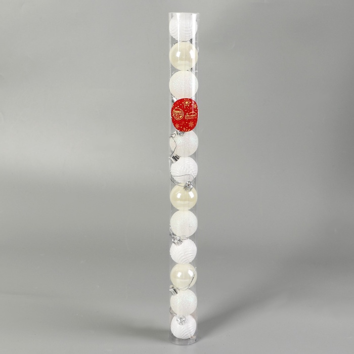 Набор белых пластиковых шаров мелодия — новогодние украшения для ёлки, которые гармонируют с веточками. Они подходят для стилей классика, скандинавский, датский или ар-деко, создавая спокойную атмосферу праздника.