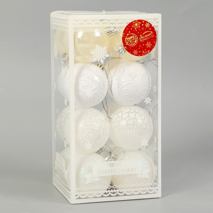 Пластиковые новогодние шары белого цвета с узором «трещинки» — это стильное и лаконичное решение для украшения ёлки в преддверии праздника. Игрушки диаметром 6 см выполнены в классической форме и подходят под разные стили: от строгой классики до датского минимализма. Набор из 16 элементов предлагает достаточно игрушек для создания цельной и гармоничной композиции.
