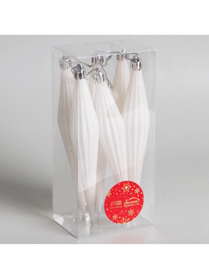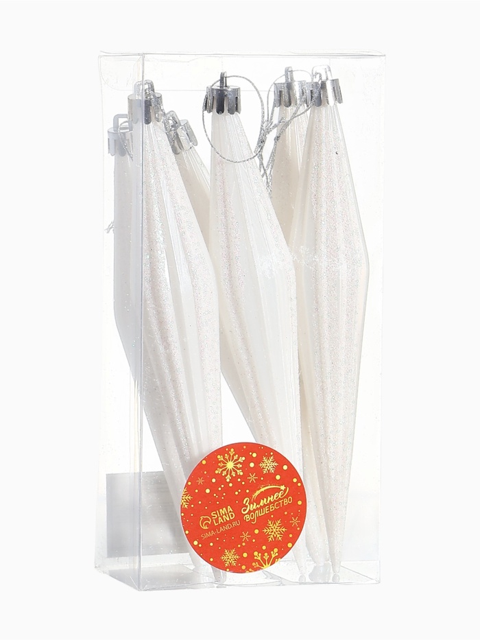 Создайте зимнюю сказку на елке – белые сосульки в стиле классики и ар-деко! Белые новогодние сосульки – набор из 6 игрушек, сочетающих строгость классики, минимализм скандинавского дизайна и графичность ар-деко. Их высота – 18 см, что делает каждую заметным акцентом без перегрузки композиции.