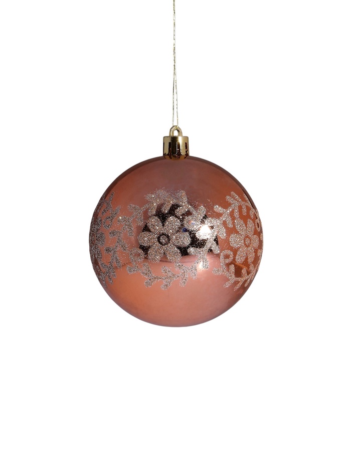 Эти украшения с цветочным рисунком в золотистых тонах придают ёлке благородство и глубину. Их стильный дизайн гармонично впишется в праздничный интерьер, формируя атмосферу торжественности и изящества.