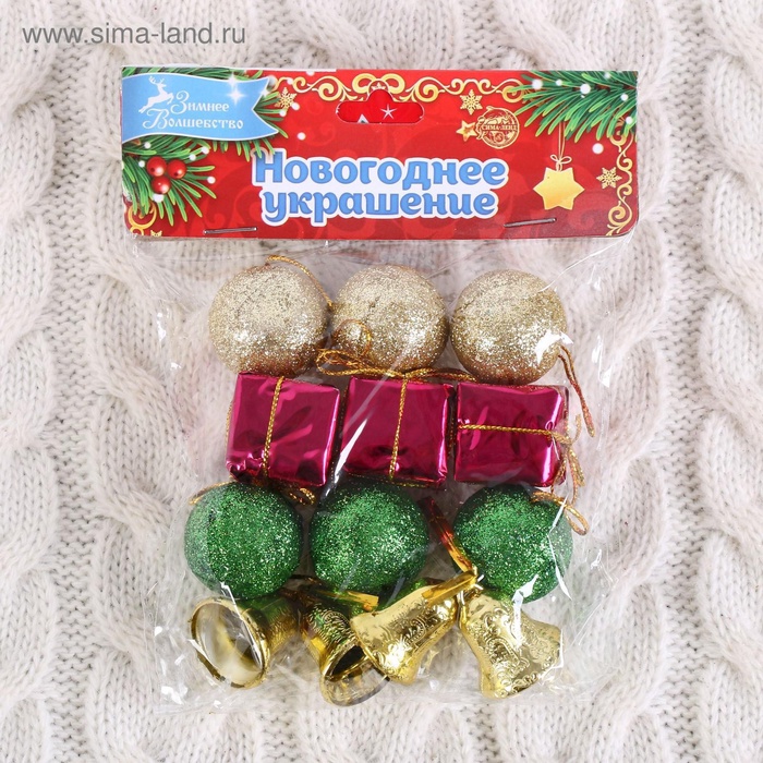 Ёлочные игрушки «Новогодний бум», набор 13 шт. (6 шаров, 4 колокольчика, 3 подарка), 3 см, разноцветные