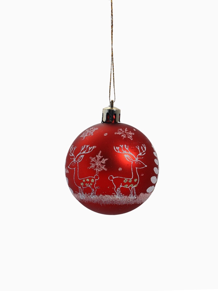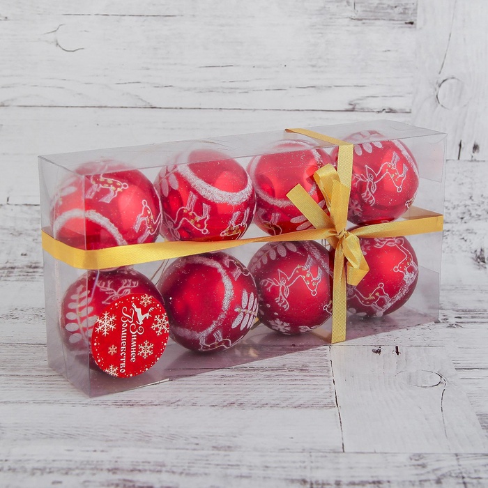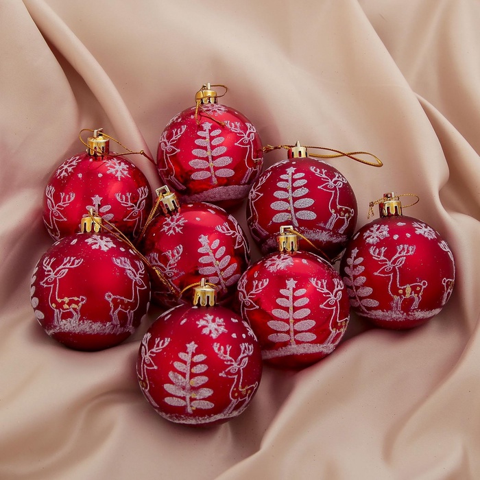 Украсьте Новый год стильным цветовым решением. Ёлочные игрушки «Оленёнок у ёлочки», шары новогодние, d=6 см, набор 8 шт., красный приблизят праздничное настроение и наполнят интерьер роскошью.