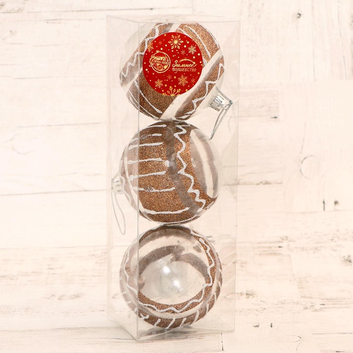 Ёлочные игрушки «Праздничное настроение», орнамент, шары новогодние, набор 3 шт., d=8 см, золотистый
