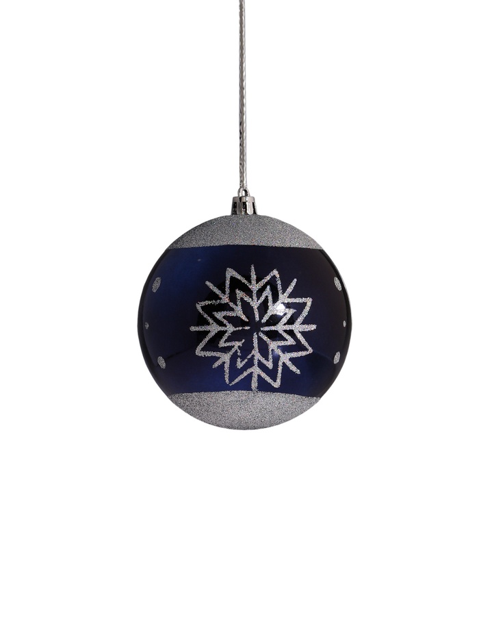 Ёлочные игрушки «Праздничные узоры», шары новогодние, d=10 см, набор 3 шт., снежинка, серебристо-синий
