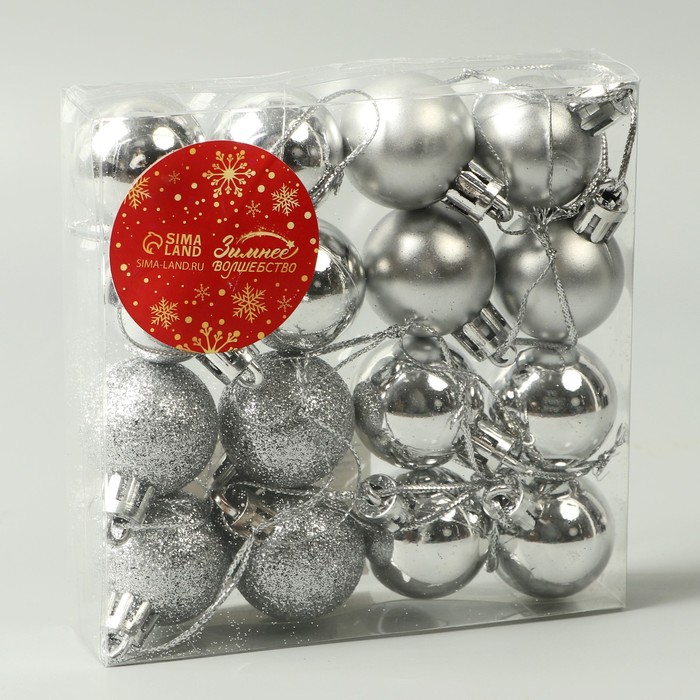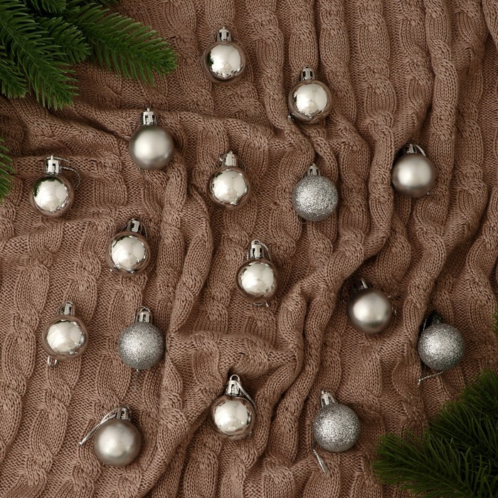Серебристые новогодние шары «Праздничный переполох» — это лёгкий, но заметный акцент для ёлки. Набор из 16 пластиковых игрушек диаметром 3 см подойдёт как основа для монохромного декора или как фон для других украшений. Они легко вписываются в датский, скандинавский и ар-деко стиль, добавляя интерьеру света и праздничной свежести без излишней вычурности.