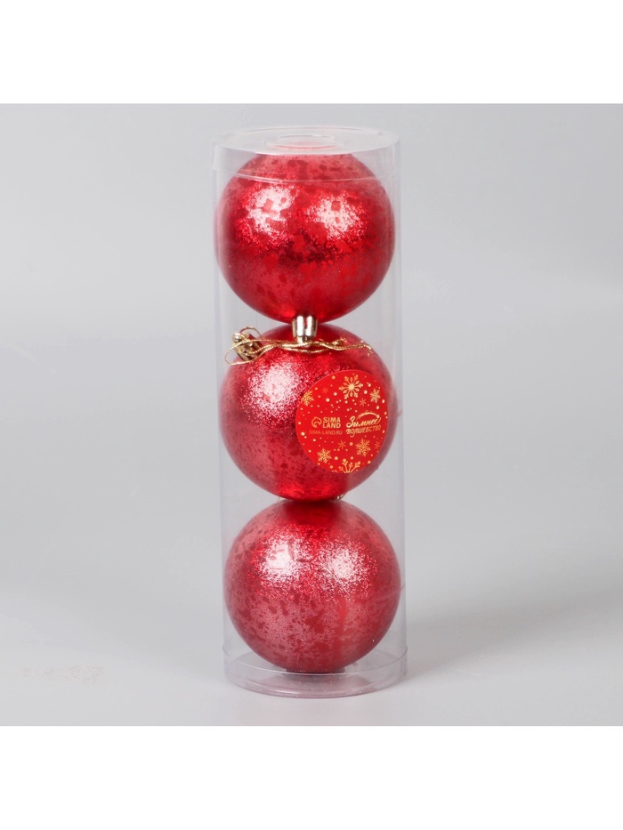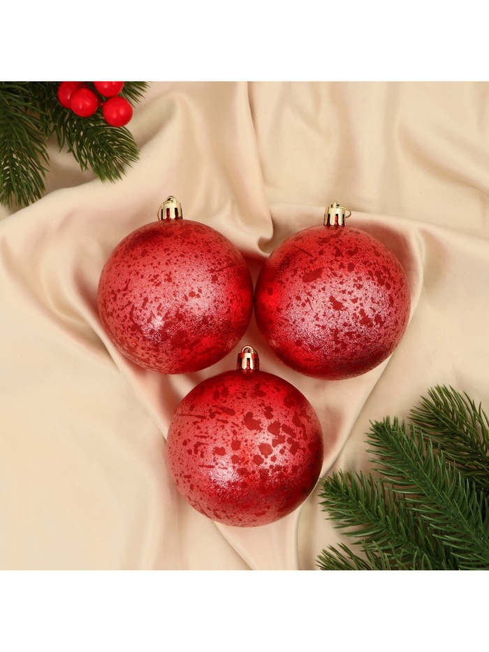 Красные новогодние шары диаметром 8 см из ретро-набора из трёх штук сочетают классический стиль и современные тенденции декора. Их однотонное оформление и элегантная форма подчёркивают праздничную атмосферу, внося в интерьер нотки барокко, скандинавского минимализма и фьюжн.