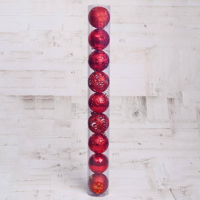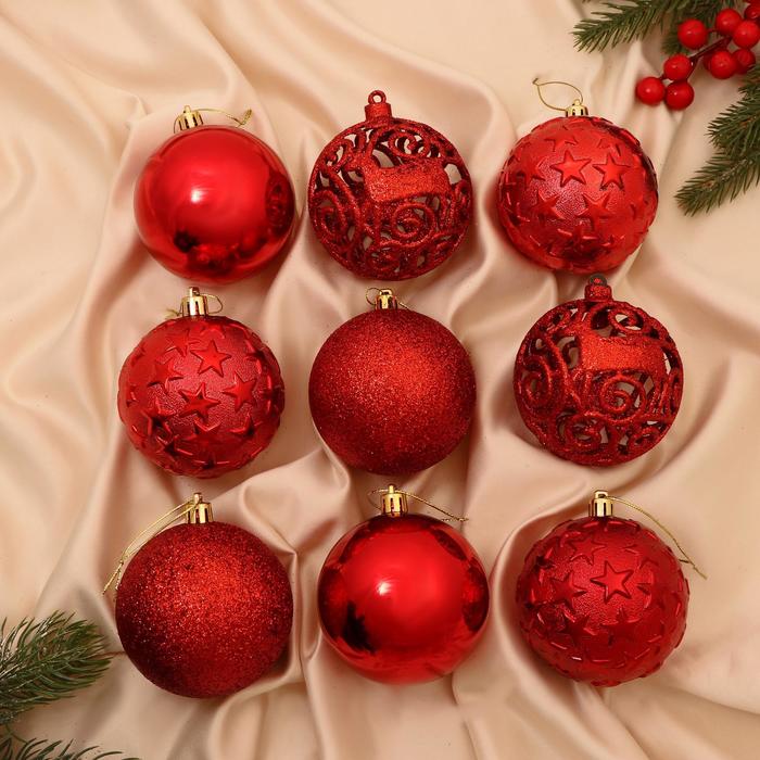 Новогодние шары красного цвета с резным узором — это сочетание классики и праздничного блеска для украшения ёлки. Набор из 9 пластиковых игрушек диаметром 8 см подойдёт для создания атмосферы Нового года в стиле новогоднего барокко, скандинавского минимализма или фьюжн. Яркий оттенок и декоративная текстура делают их заметным, но гармоничным элементом зимнего торжества.