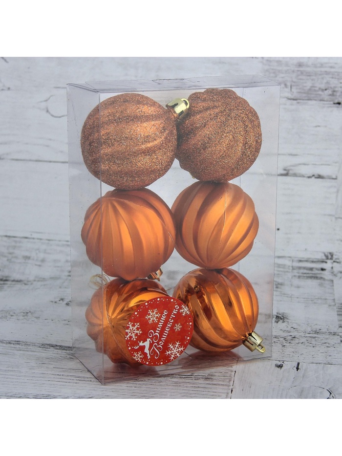 - Комплект из 6 шаров с равномерным золотистым оттенком.