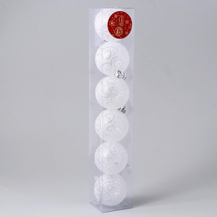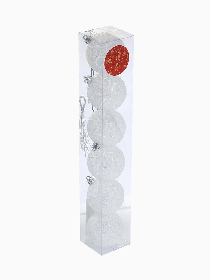 Ёлочные игрушки «Волшебные узоры», шары новогодние, набор 6 шт., d=6 см, белый очаровательно смотрятся с новогодними игрушками в виде бантов и цветов. Создайте особенный новогодний интерьер в белом цвете.