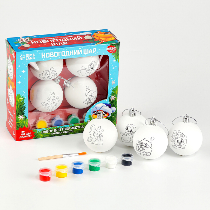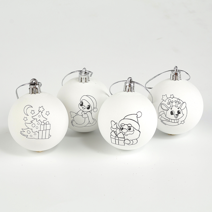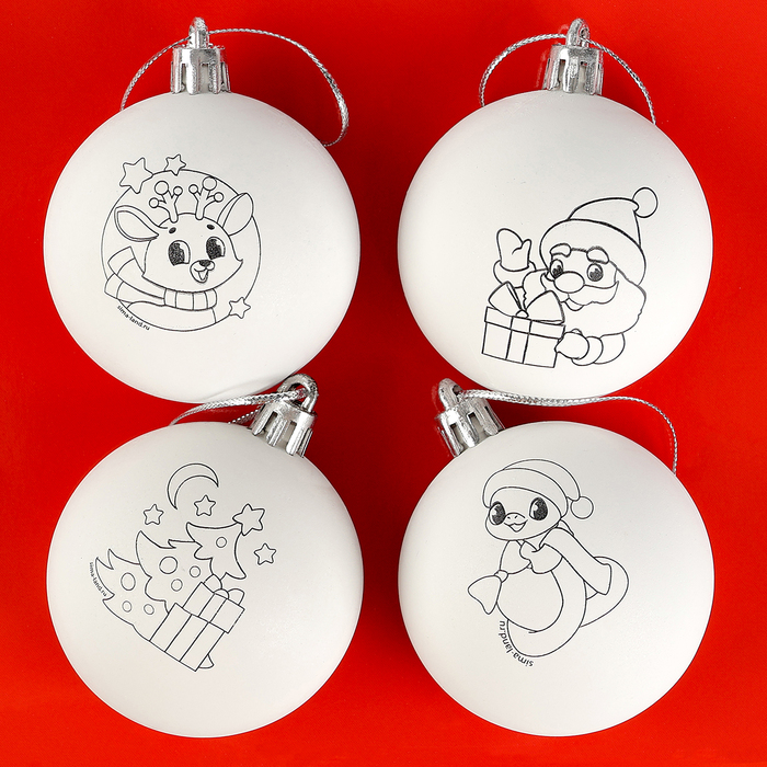 В наборе шары с нанесённым рисунком. Вам остаётся лишь проявить фантазию и раскрасить их на свой вкус. Набор шаров также станет прекрасным подарком друзьям и близким.