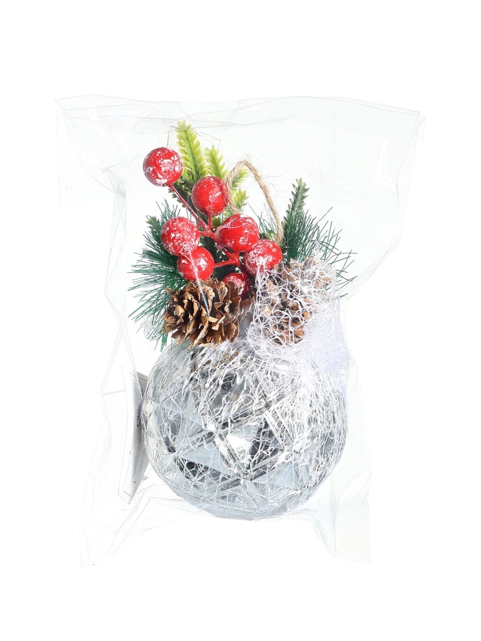 Этот шар вписывается в тенденции северного дизайна, где ценятся простота и функциональность. Серебристый оттенок подчёркивает праздничную атмосферу, отражая свет гирлянд и создавая ощущение лёгкости. Украшение помогает сформировать стильный и сдержанный образ ёлки, подходящий для разных интерьеров и настроений.