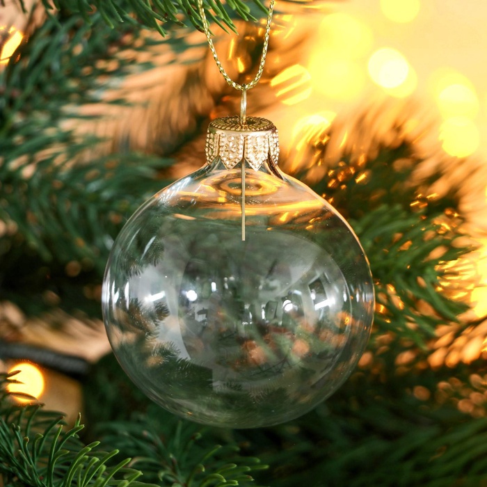 Этот шар добавляет дереву ощущение зимы и семейного тепла. Прозрачность и строгая форма работают вместе, чтобы сделать ёлку частью вашей личной истории. Используйте его как самостоятельный элемент или как фоновое дополнение — одинаково хорошо усиливает атмосферу торжества и доброжелательность дома.