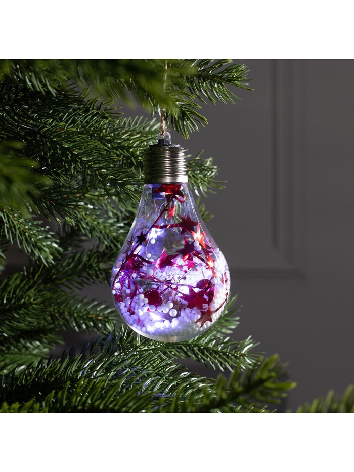 Ёлочный шар «Шишки с красной мишурой», батарейки, 5 LED, свечение белое