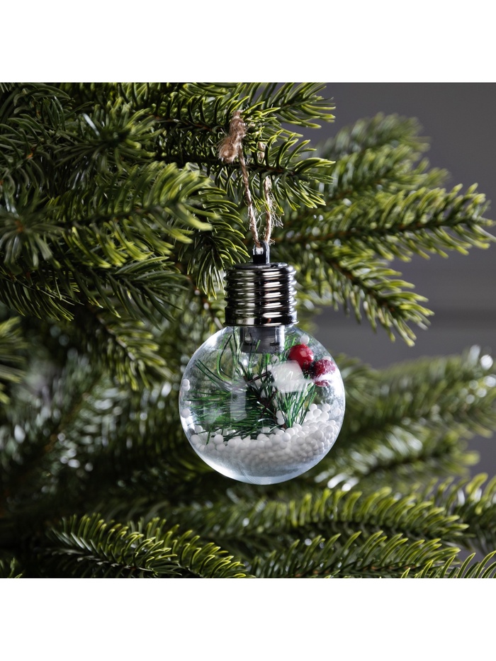 - Дизайн: Прозрачный шар с наполнением, идеально подходящий для новогоднего декора.