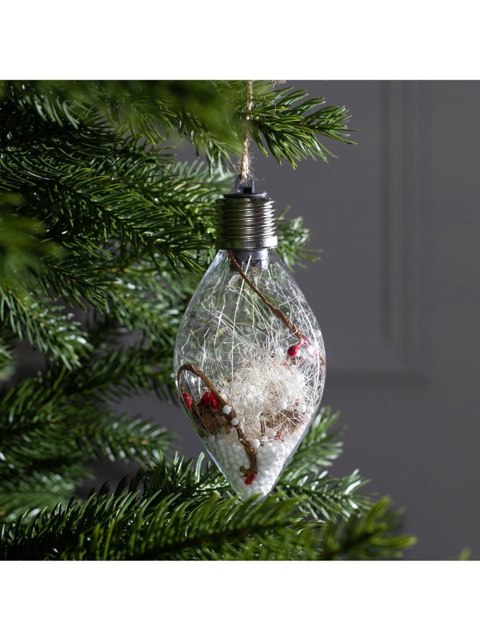 Новогодними игрушками традиционно украшают пушистые елочки, окна и ветки деревьев на улице, ведь переливы белых огоньков вселяют в сердца нотки очарования и радости. Ёлочные шары оригинально выглядят в зимнем декоре. Теплые огни притягивают взгляд, наполняют сердца ощущением волшебной сказки и создают вокруг уютно-праздничную атмосферу.