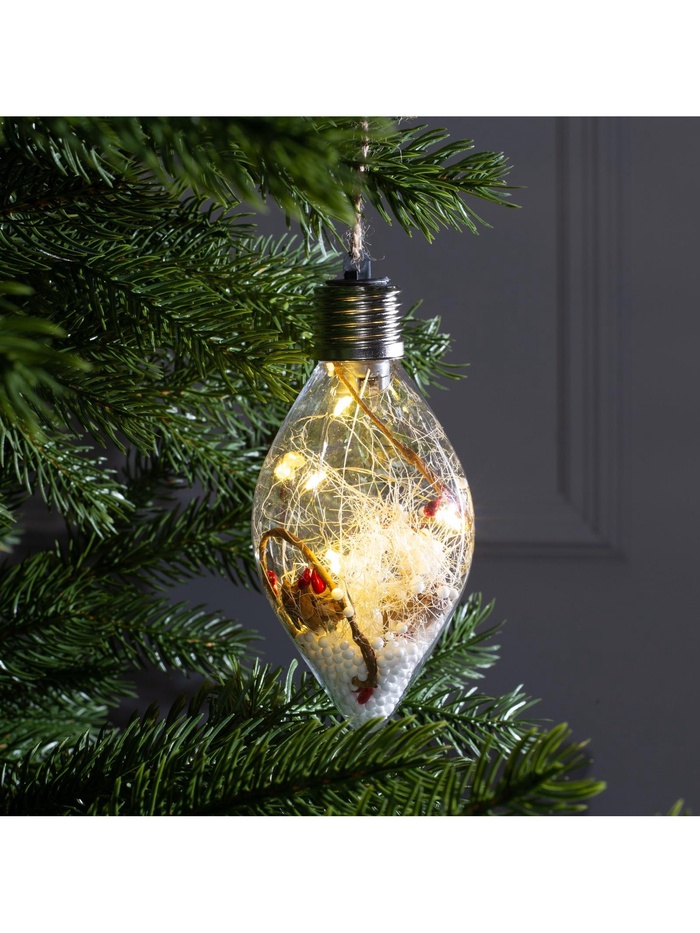 Новогодними игрушками традиционно украшают пушистые елочки, окна и ветки деревьев на улице, ведь переливы белых огоньков вселяют в сердца нотки очарования и радости. Ёлочные шары оригинально выглядят в зимнем декоре. Теплые огни притягивают взгляд, наполняют сердца ощущением волшебной сказки и создают вокруг уютно-праздничную атмосферу.