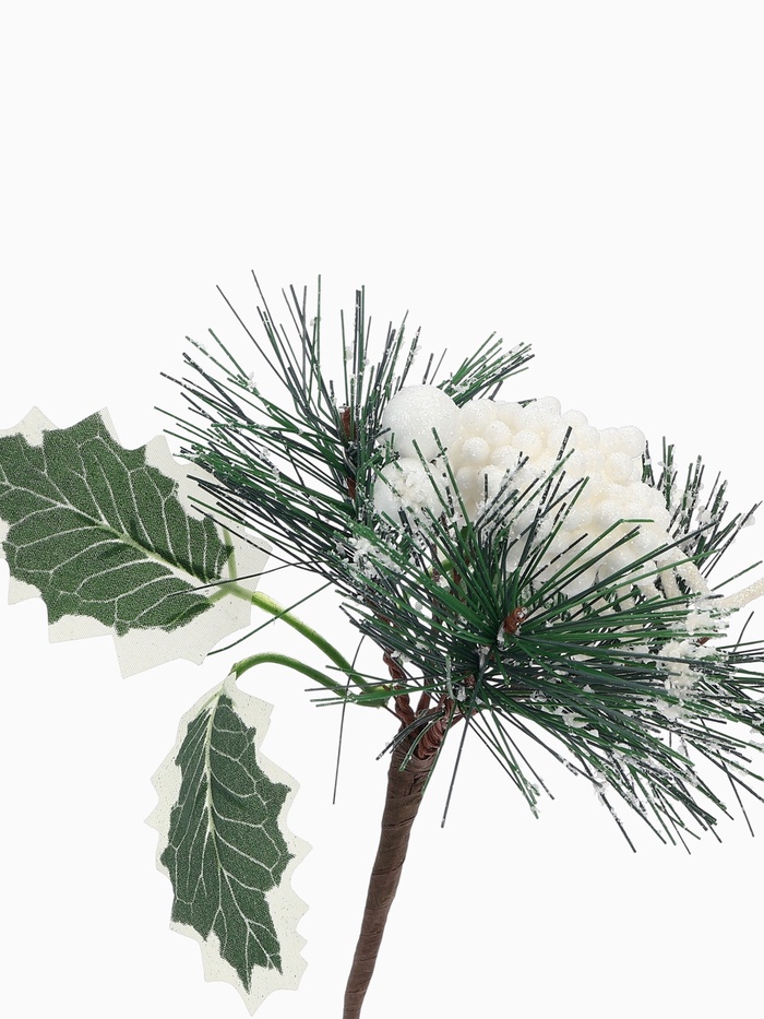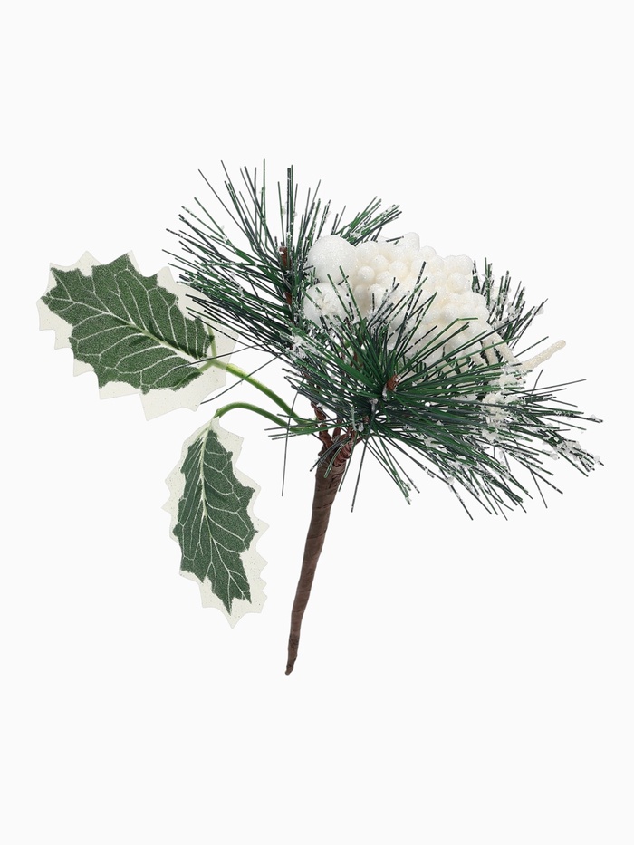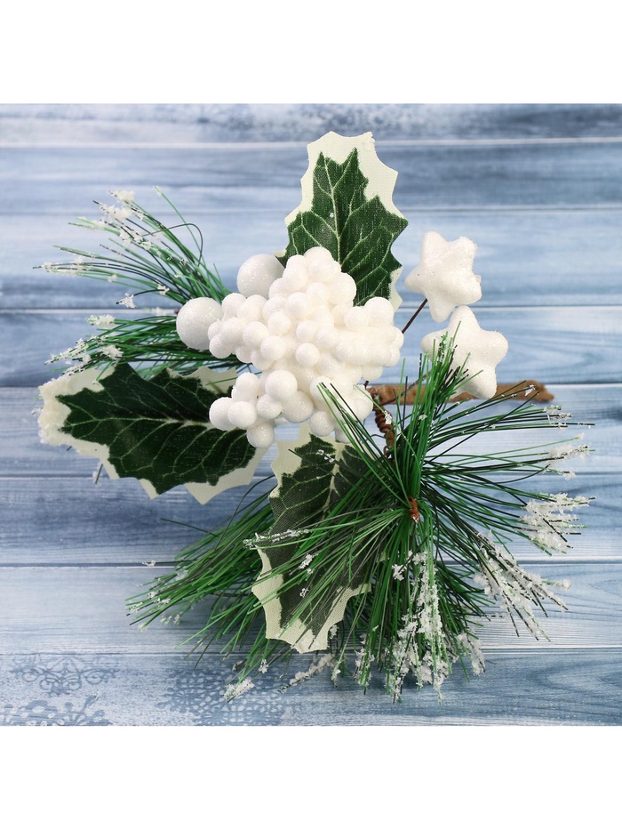 Эта декоративная ветка в стиле скандинавского шебби-шика и классики выполнена в белом цвете и имеет высоту 18 см. Ее композиционный дизайн включает хвою, листья и белые ягоды, создавая атмосферу зимних грёз и мечтаний. Такой элемент отлично подходит для оформления новогодних интерьеров, добавляя нежности и праздничного уюта в дом или коммерческое пространство.