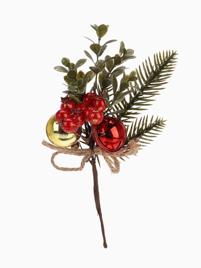 Эта еловая ветка для новогодних украшений выполнена из пластика и представляет собой композицию высотой 23 см. Ее насыщенный красный цвет и стильное оформление в сочетании с элементами новогоднего барокко и скандинавского дизайна создают атмосферу уюта и волшебства. Такой декоративный элемент отлично подойдет для оформления елок, зимних композиций и праздничных интерьеров.
