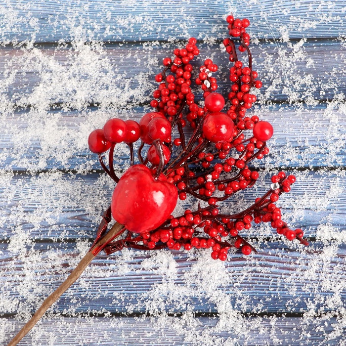 - Тип — декоративная ветка, подходит как для интерьера, так и для создания композиций на ёлку, стену или подарочную упаковку.