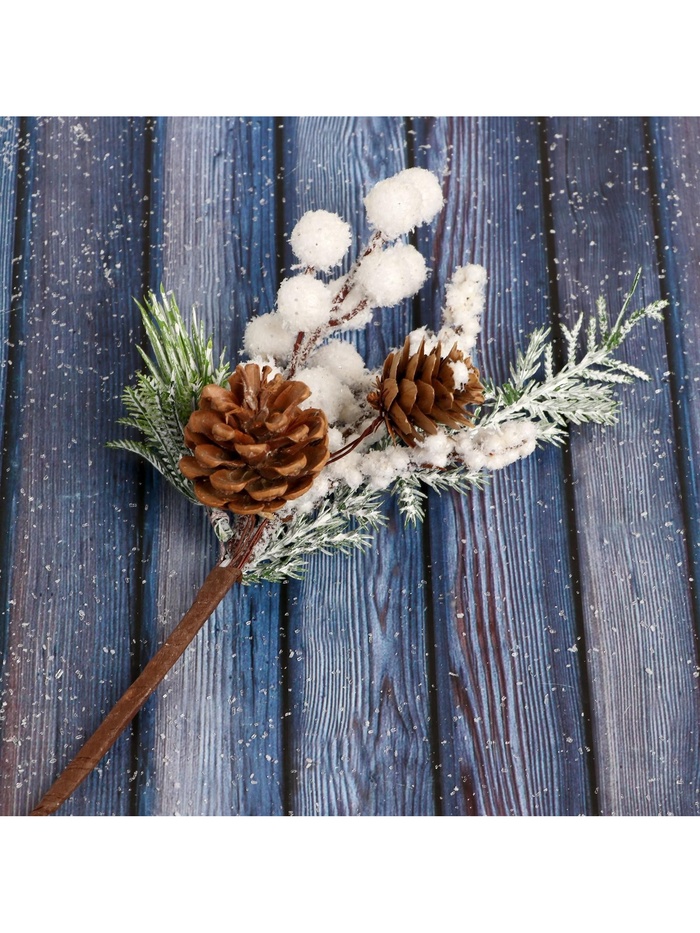 Эта ветка добавляет дереву и комнате ощущение покоя и доброжелательности. Белые тона и природные формы работают вместе, чтобы сделать ваш дом частью личной зимней истории. Используйте её как основной элемент или фоновое дополнение — одинаково хорошо усиливает дух торжества и предпраздничное тепло.