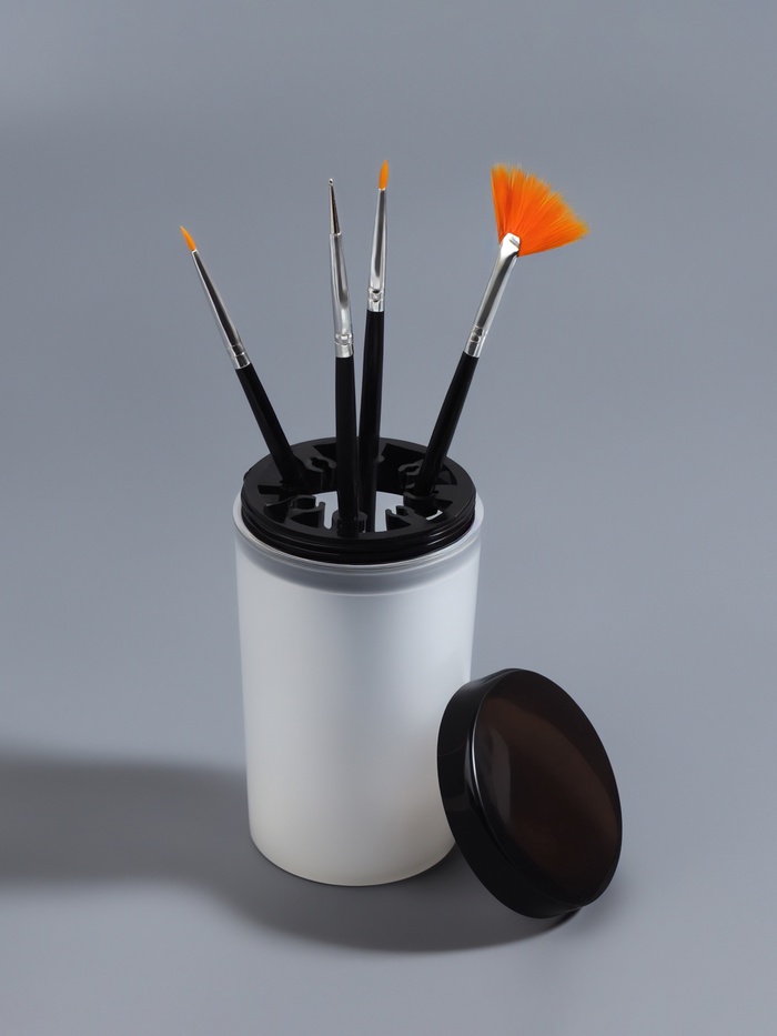 Ёмкость используется для промывки кистей для маникюра, наращивания и дизайна ногтей. Специальные держатели позволяют сушить кисти в вертикальном положении. Баночка поможет держать ваше рабочее пространство в чистоте, а кисти всегда будут под рукой.