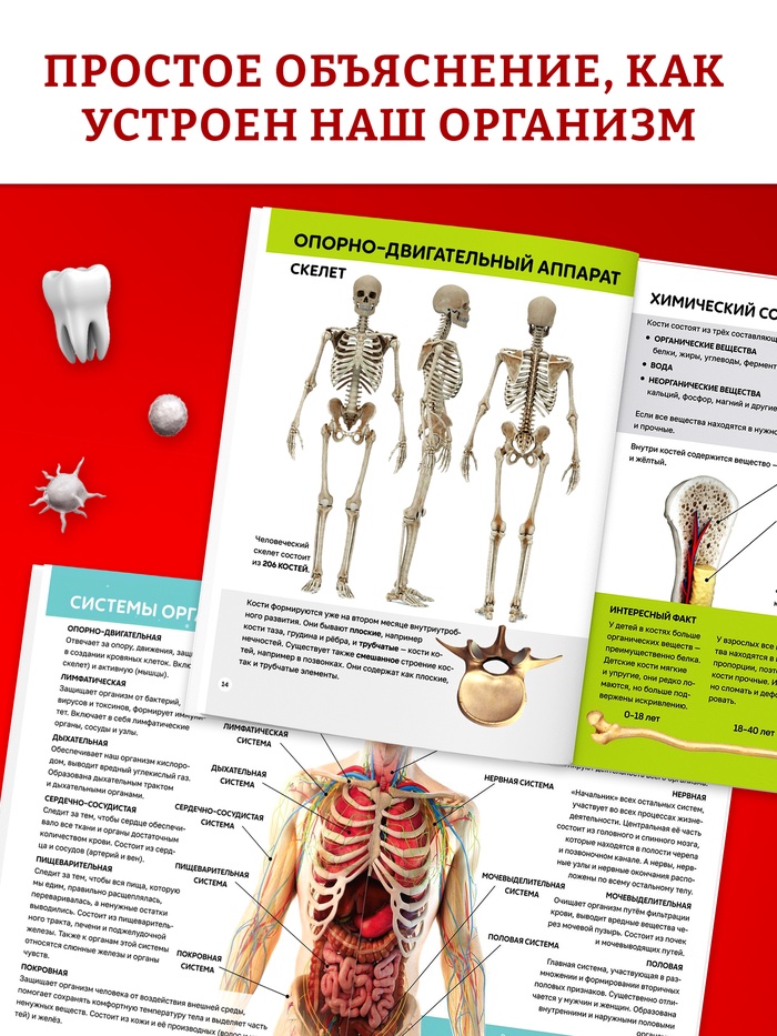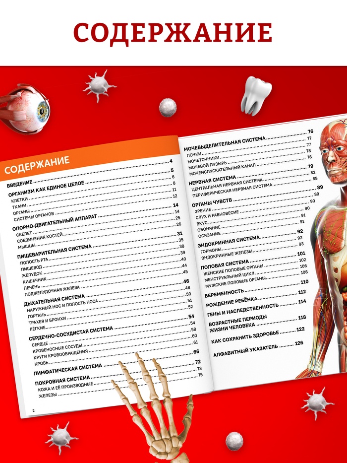 Энциклопедия в твёрдом переплёте "Строение тела человека", 128 страниц.