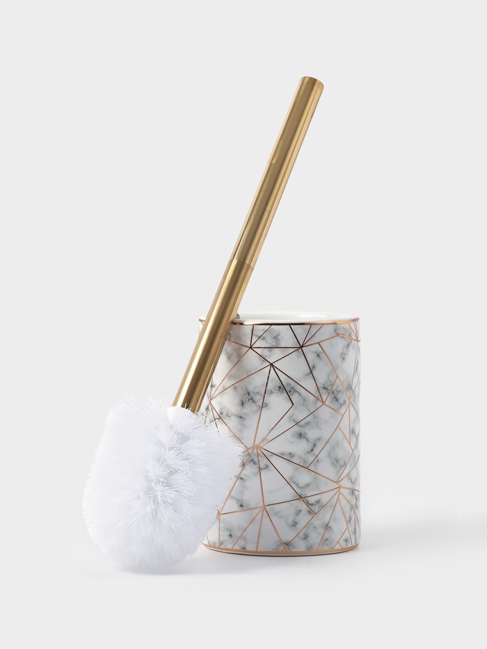 Эстетичный ёршик для унитаза с подставкой в белом цвете с уникальным мраморным рисунком станет неотъемлемой частью вашего современного интерьера. Этот изысканный аксессуар гармонично сочетает в себе стиль и практичность, превращая рутинные заботы о чистоте в приятное занятие.