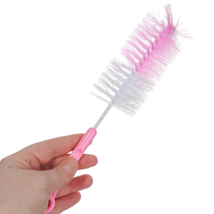 Данная модель легко и быстро устранит загрязнения. Щетина изготовлена из прочного и долговечного материала — нейлона. Покрутите ручку, чтобы смыть налёт со дна и выступов, и удалите остатки пищи, совершая вертикальные движения. На конце ручки находится маленький ёршик для мытья сосок.