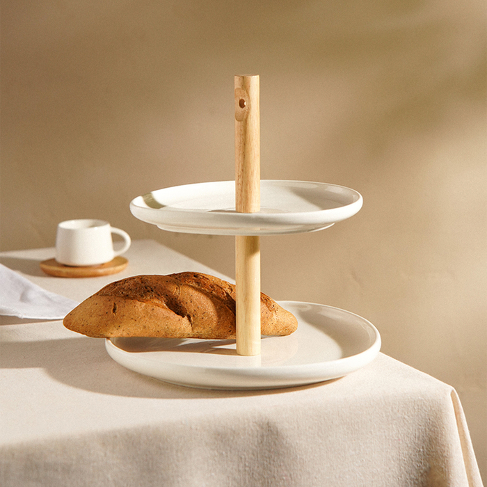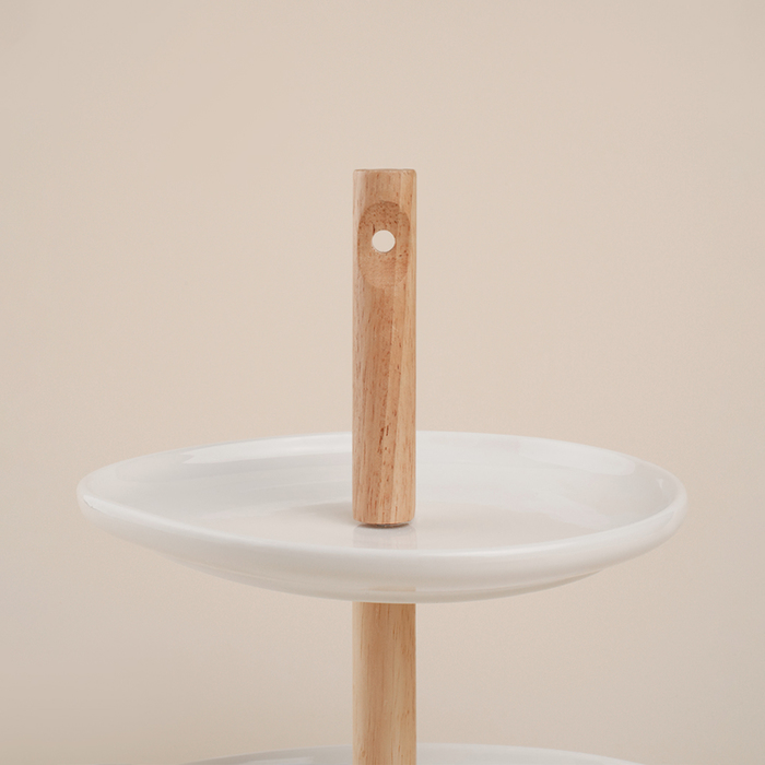 Гладкая белая поверхность без рисунка подчёркивает минималистичный и современный дизайн, что делает её универсальным решением для любого интерьера — будь то праздничный банкет или уютный семейный ужин. Круглая форма этажёрки способствует удобной подаче, а прочный фарфор гарантирует её долговечность и устойчивость к механическим повреждениям.
