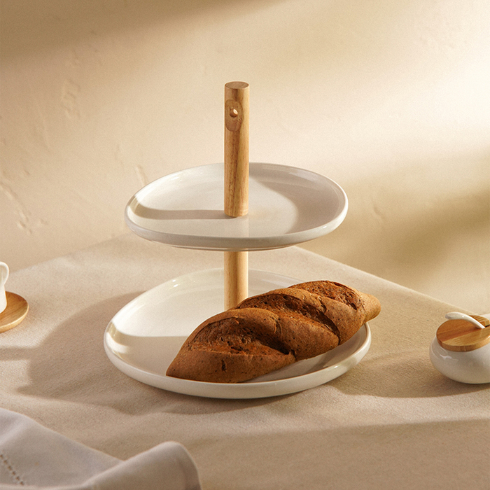 Элегантная и функциональная этажёрка «Тренто» из фарфора — это не просто предмет сервировки, но и изысканное украшение вашего стола. Изготовленная из высококачественного фарфора, эта двухъярусная этажёрка идеально подойдёт для подачи фруктов, пирожных или других десертов, добавляя нотку изящества любому событию.