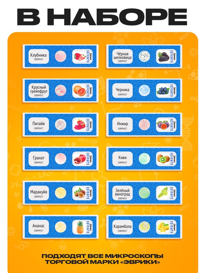 ЭВРИКИ Набор для опытов "Набор микропрепаратов", фрукты и ягоды