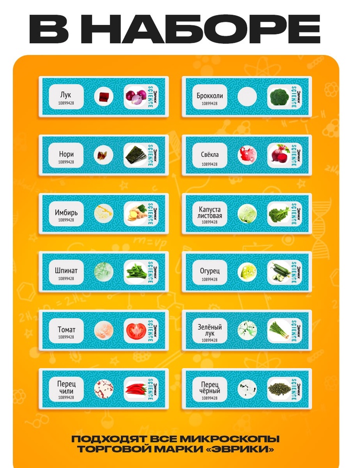 ЭВРИКИ Набор для опытов "Набор микропрепаратов", овощи и зелень
