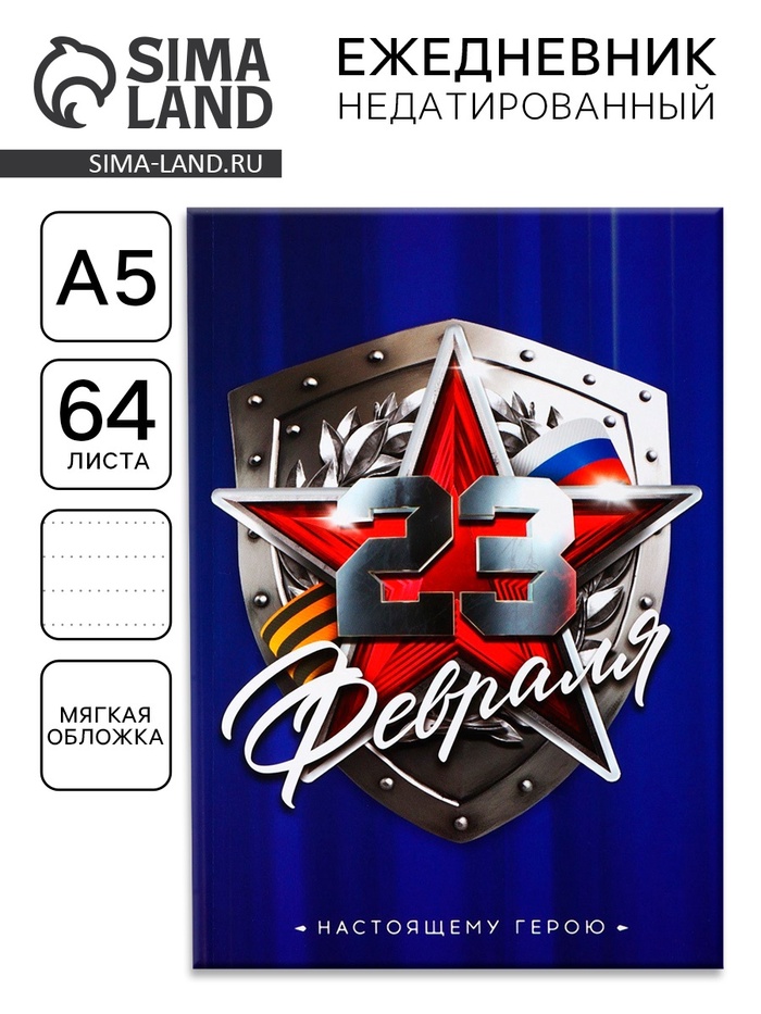 Ежедневник А5, 64 листа, недатированный, в точку А5, 64 листа «С 23 февраля»