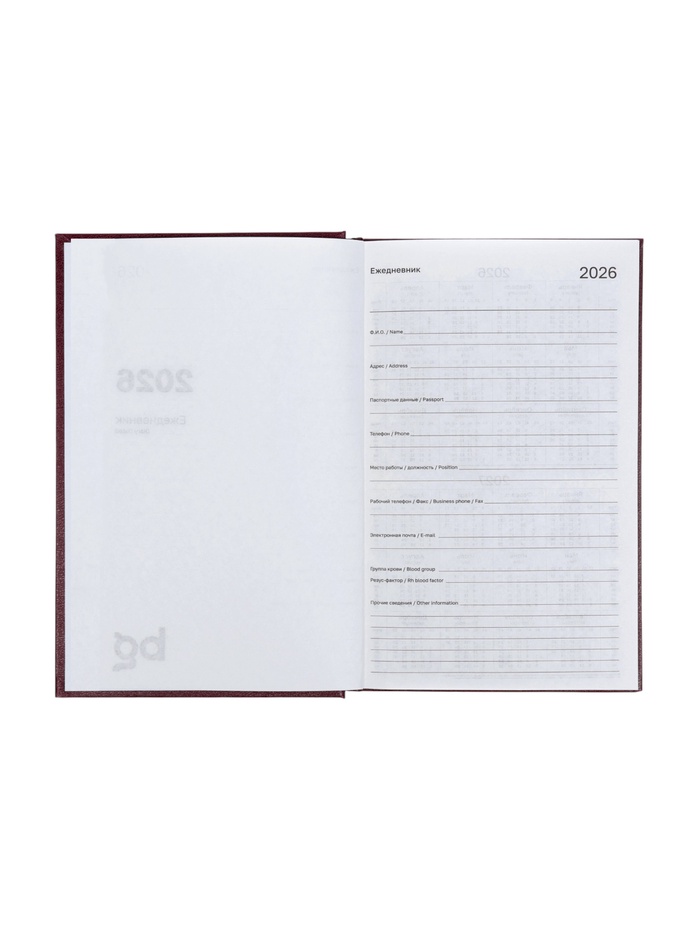 Ежедневник датир 2026г А5 168л б/вин, Бордо