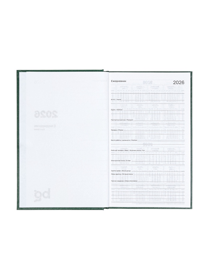 Ежедневник датир 2026г А5 168л б/вин, Зеленый ТЕМНЫЙ
