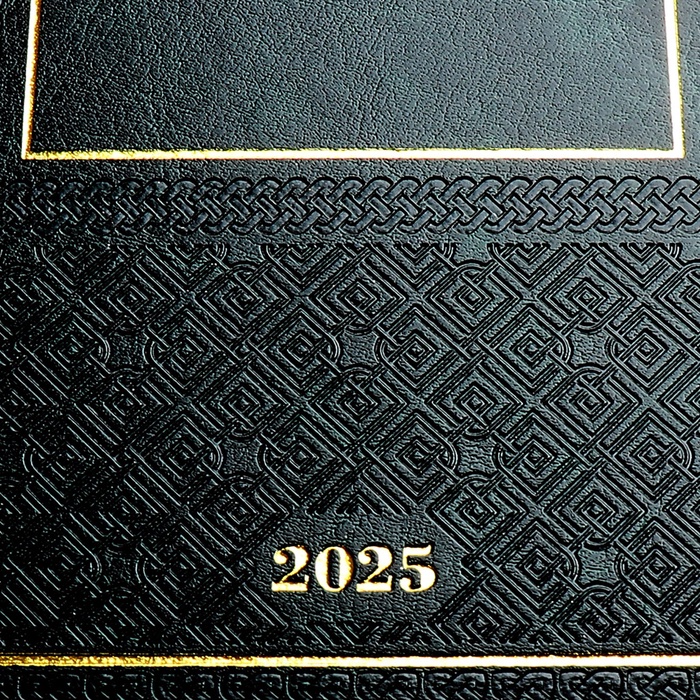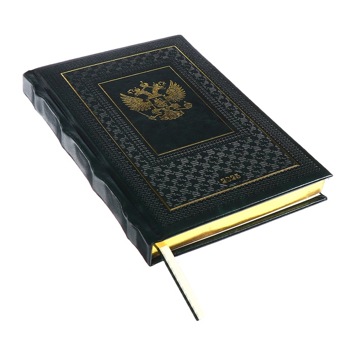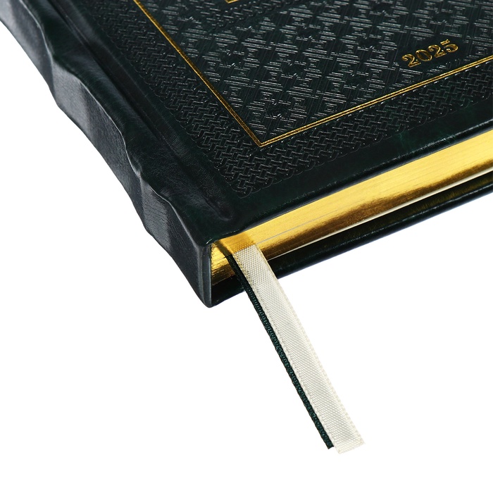 Этот ежедневник сочетает в себе эстетику оформления с практичностью ежедневного использования. Тиснение фольгой на зелёной обложке создаёт ощущение ценности, а золотой срез страниц добавляет завершённость внешнему виду.