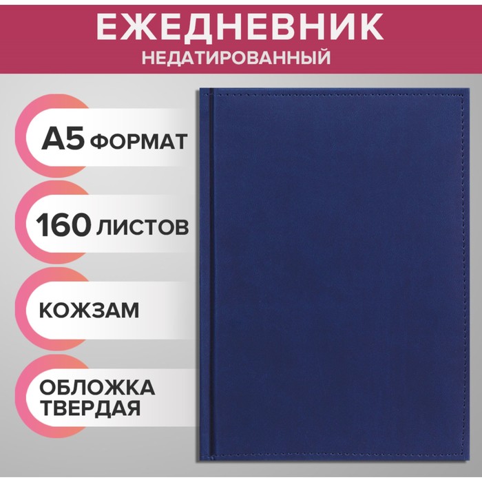 Ежедневник недатированный А5, 160 листов «Вивелла», обложка искусственная кожа, перфорация углов, тёмно-синий