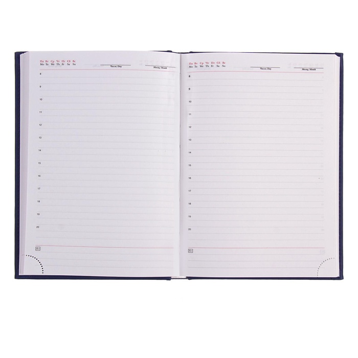 Недатированный ежедневник вы сами проставляете даты своих дел. Вам не обязательно прописывать в нем каждый день, вы можете использовать эти дни для дополнительных записей и примечаний к тем дням, в которые у вас все довольно плотно забито.