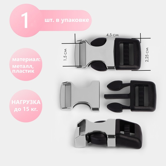 Фастексы — простые в применении, но очень надёжные застёжки. Соединяются и разъединяются одним нажатием, поэтому прекрасно подходят для изготовления или ремонта вещей, требующих особого удобства. Данная модель из металла и пластика станет отличным решением для создания зоотоваров (ошейников, поводков) и галантерейных изделий (ремней, рюкзаков).
