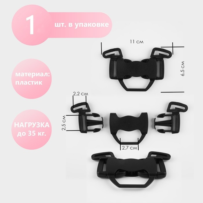 Фастексы — простые в применении, но очень надёжные застёжки. Соединяются и разъединяются одним нажатием, поэтому прекрасно подходят для изготовления или ремонта вещей, требующих особого удобства. Это могут быть школьные рюкзаки, сумки, товары для спорта или туристическое снаряжение. Также данную модель можно использовать в качестве застёжки на детском автокресле.