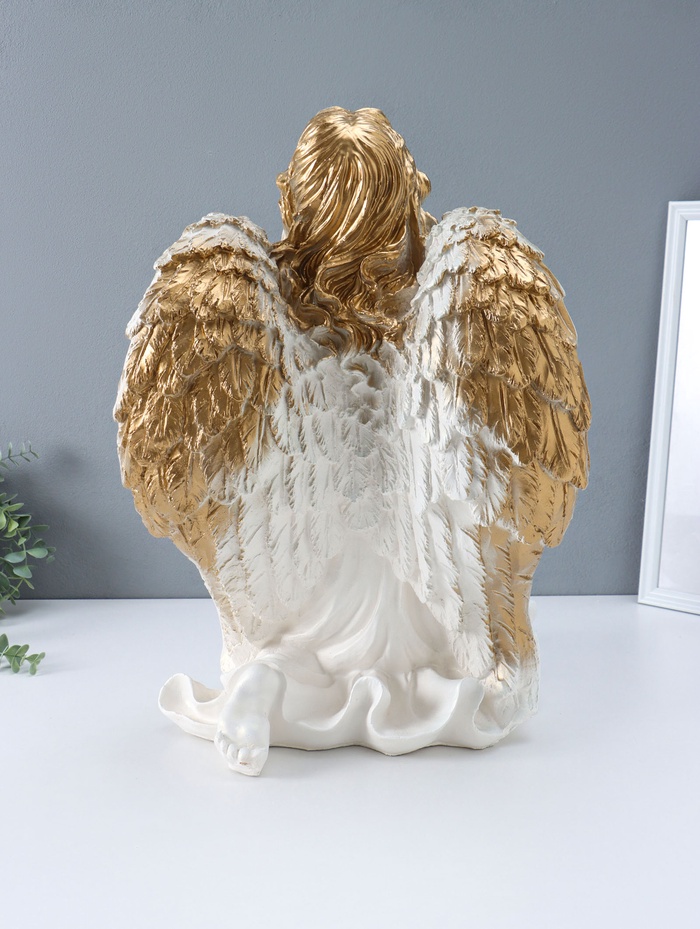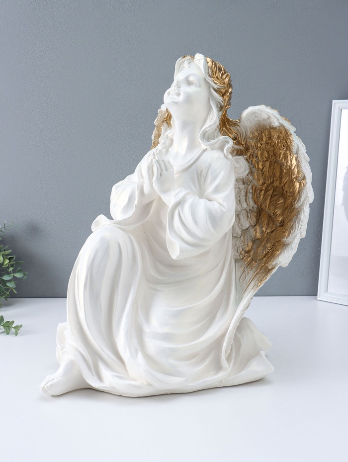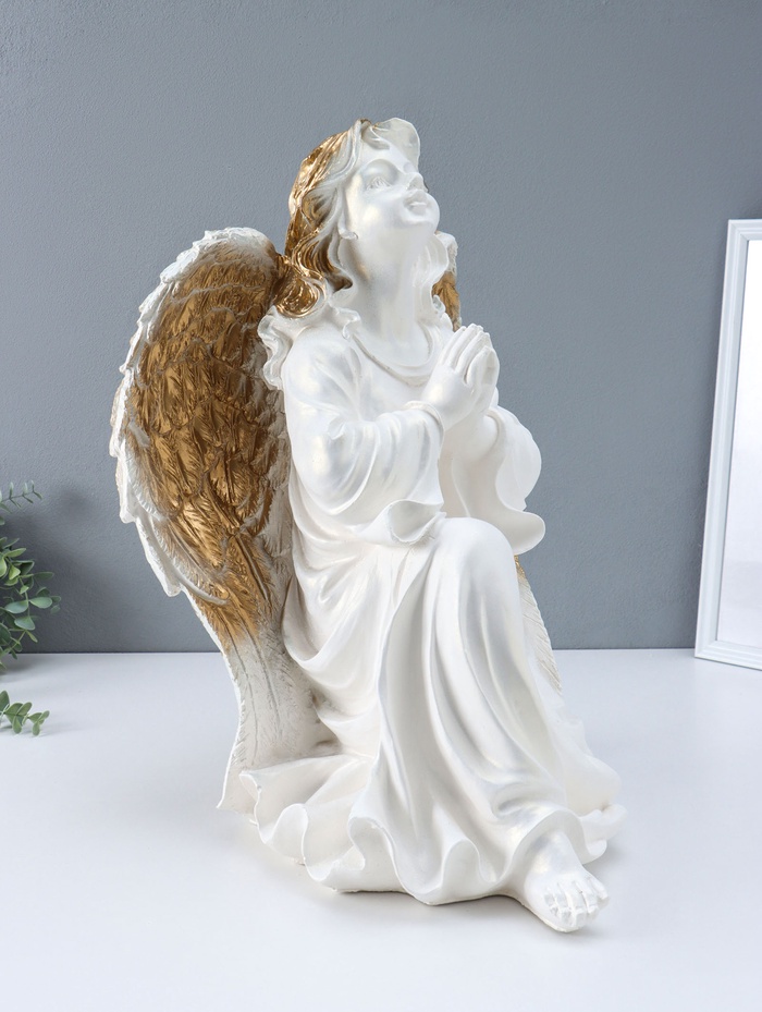 Фигура "Ангел на колене" большой, белый с золотом, 58х48х38 см