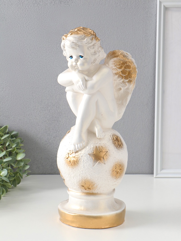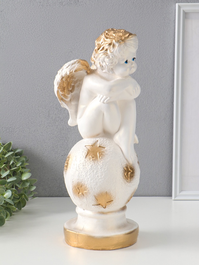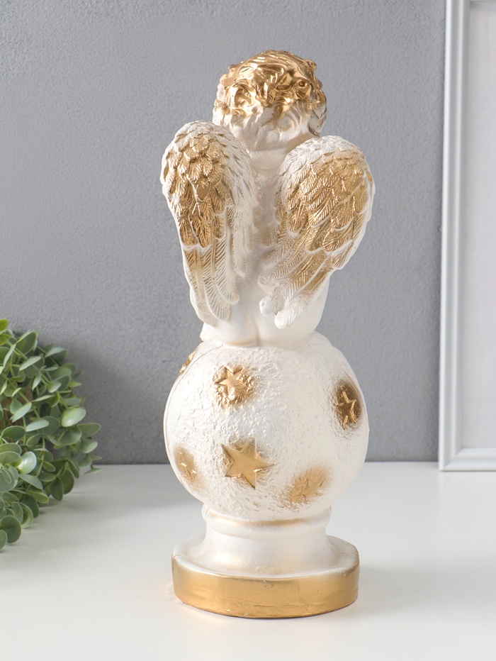 Фигура "Ангел на шаре" белый, 14х15х40 см