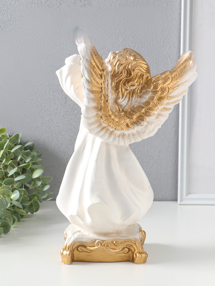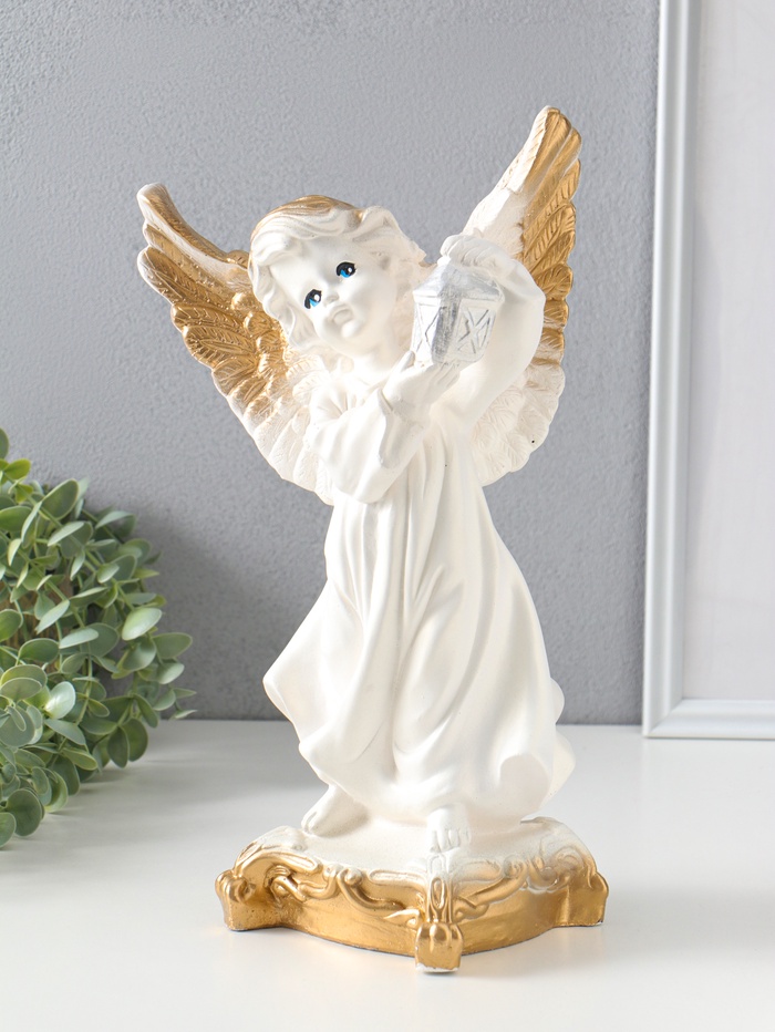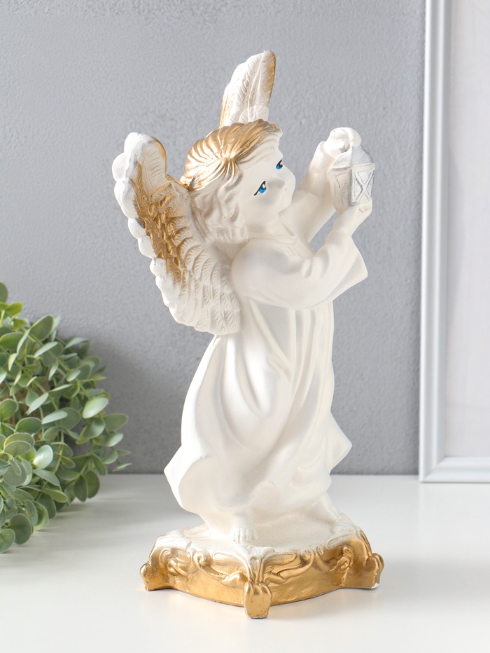 Фигура "Ангел с фонарём" белый, 34х22х15 см