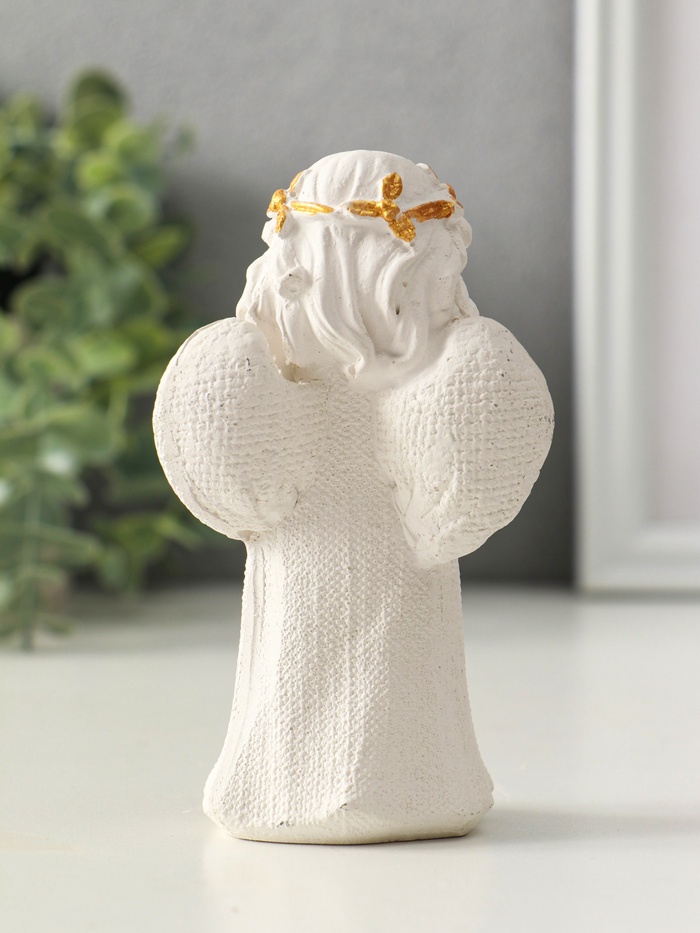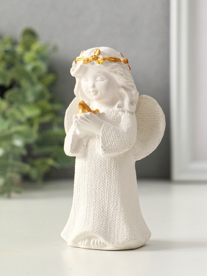 Фигура "Ангел с птицей" размер 11х7х4 см, белый с позолотой