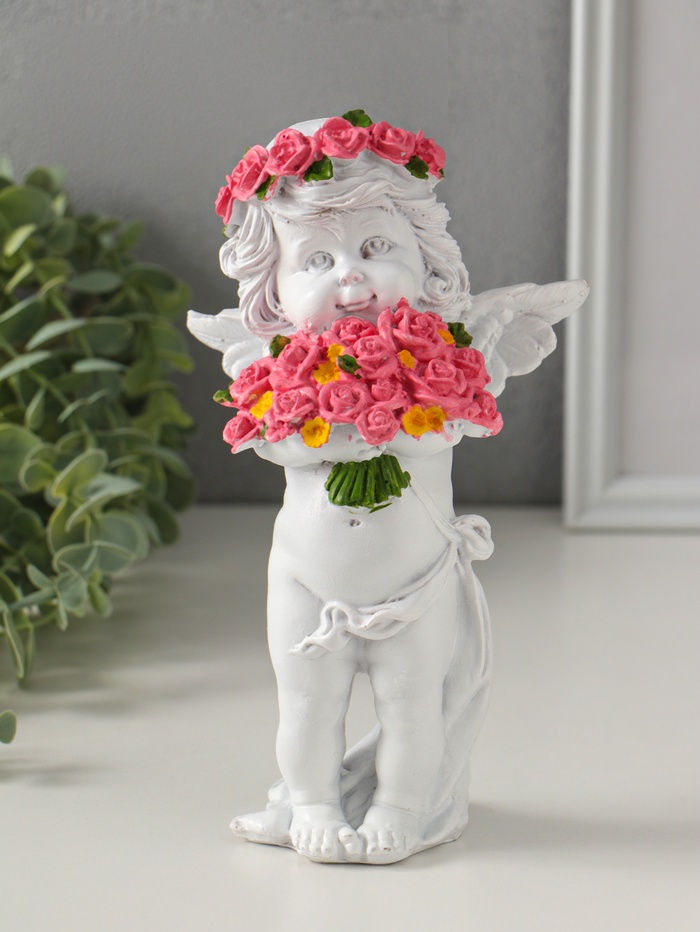Эта белая фигура ангела с цветами станет изысканным акцентом в саду или тёплым подарком, наполненным смыслом. Её классический образ несёт ощущение спокойствия, нежности и светлой надежды.
